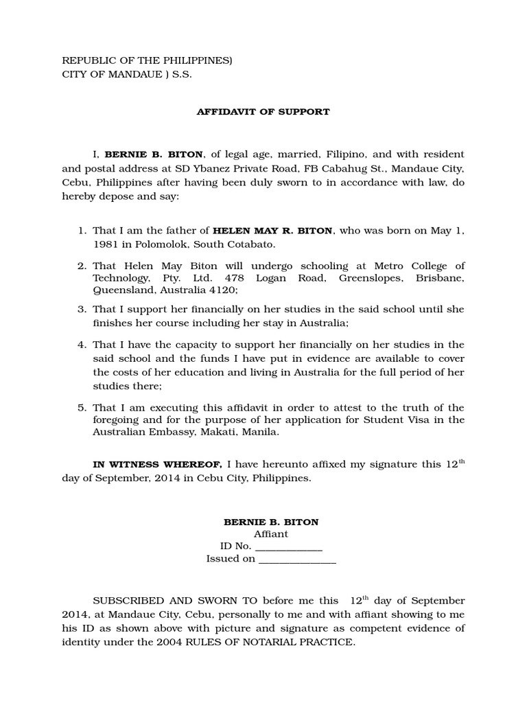 Affidavit Of Support Sample Letter For Immigration ... from lh5.googleusercontent.com Affidavit of support letter is an important letter telling about financial status. An affidavit of support is basically a document that assures the authorized bodies know that an individual is accepting the responsibility of financing someone else or becoming a financial sponsor to. This guide has you covered for answers, and samples of how to write the letter. Each fact should be its own separate paragraph and you should reference any supporting documents as exhibits within the corresponding paragraph. This form must be submitted along with the application of visitor visa if the trip is sponsored. Whenever and wherever required, individuals will be prompted to use an affidavit. Nvc reviews submitted affidavit of support forms for completeness. How do i calculate my household size?